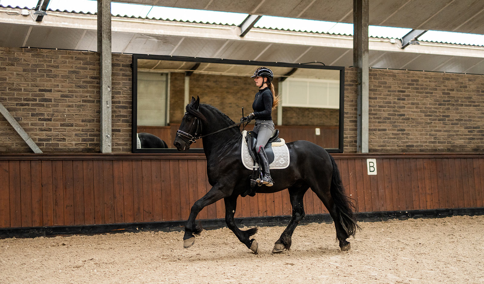 Bij de ruitersport is een goede zit van groot belang. Met een manegespiegel ziet een ruiter direct of houding, beweging en beengebruik kloppen, en of een correctie het gewenste effect heeft. Zo wordt trainen doelgerichter, met meer resultaat en meer plezier voor ruiter én paard.