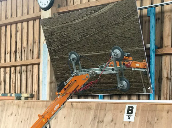 Voor binnenbakken monteren we de spiegel op speciaal voorbereide houten balken. Zo blijft de spiegel strak in lijn en beperken we vertekening tot een minimum.