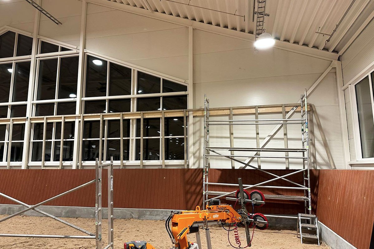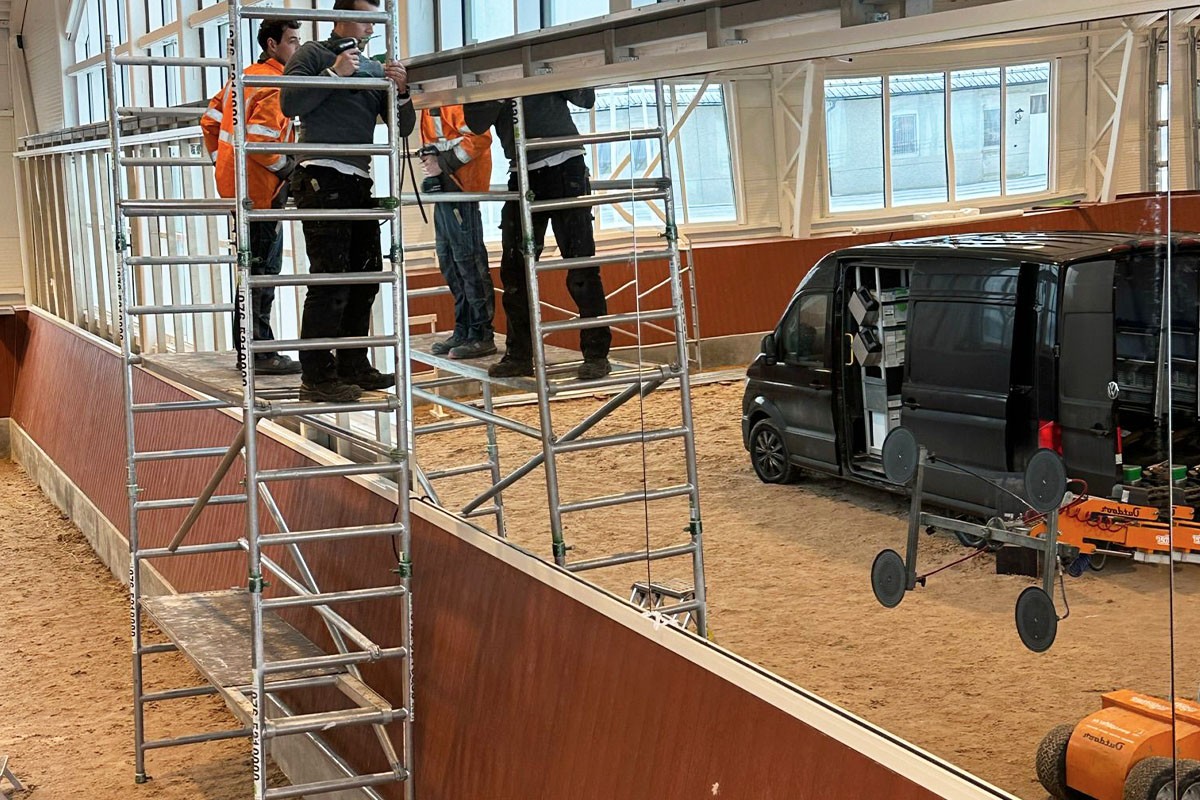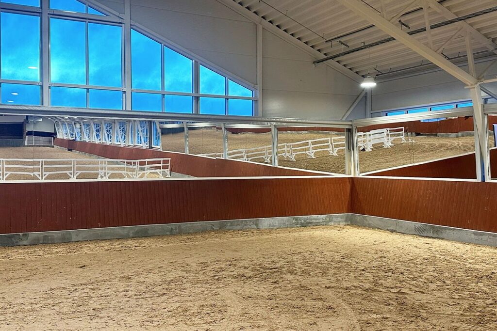 Het eindresultaat is een hoogwaardige spiegeloplossing die zowel technisch als visueel perfect aansluit op deze rijhal. De spiegelwand en hoekspiegels geven de ruiter een helder en rustig beeld vanuit meerdere hoeken, terwijl de constructie stabiliteit en duurzaamheid garandeert. Zo ontstond in deze Noorse rijhal een veilige, doordachte en professioneel afgewerkte oplossing voor intensief gebruik.
